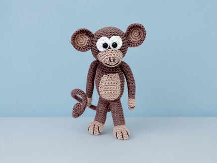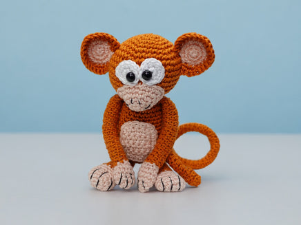 Häkle deinen eigenen, knuddeligen Affen in beliebigen Farben! Diese detaillierte Anleitung ermöglicht es dir, einen flexiblen Affen mit beweglichem Schwanz (optional mit Draht) zu kreieren. Mit seinen langen Armen kann er an Türklinken, Gardinenstangen oder in der Schrankwand hängen. Perfekt für kreative Deko-Ideen und Spielspaß. Viel Freude beim Nachhäkeln.