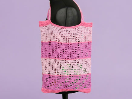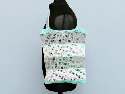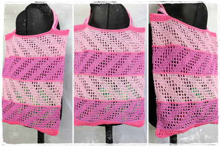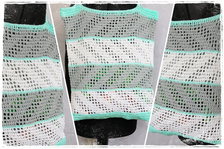 Hast du Lust auf eine schöne Sommertasche oder lieber ein nachhaltiges Einkaufsnetz? Eine schöne Tasche mit 3D Musterstreifen, nach links und rechts geneigt. Blickt man im richtigen Winkel auf die Tasche, kommt das Muster in seiner vollen Schönheit zur Geltung.