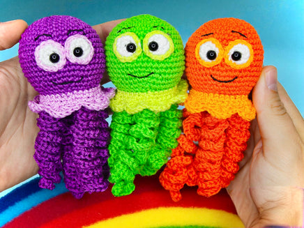 Tentakolus, the fun and cheerful jellyfish. Crochet your own colorful sea creature. A great gift for many occasions. KümaTutorials wishes you lots of fun.