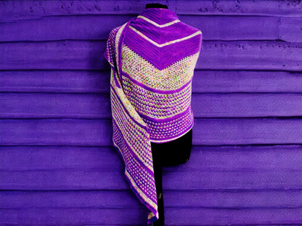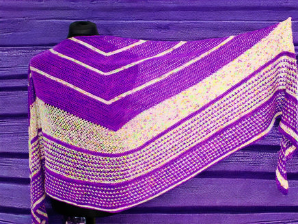 Fancy a beautiful crochet shawl? Crochet your Summer of Strips shawl. It starts as a triangle and transforms into a semicircular shawl. Wear it as a shoulder shawl for balmy summer nights in summer, or as a cozy scarf in fall and winter.