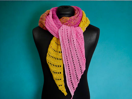 Dieses asymmetrische Häkeltuch ist das perfekte Projekt für alle, die einfache Muster mit einem spannenden Look kombinieren möchten. Das Grundmuster besteht aus nur drei Reihen, die sich ganz leicht merken und entspannt nebenbei häkeln lassen. Das Besondere: Du kannst dein fertiges Tuch auf der Vorderseite mit einem grafischen Muster verzieren - so entstehen zwei Seiten mit zwei ganz unterschiedlichen Looks. Je nachdem, wie du das Tuch trägst, bekommt es jedes Mal einen neuen Ausdruck.