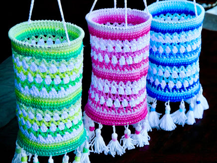 A colorful eye-catcher by day, a beautiful shadow play by night thanks to the LED lights. Crochet beautiful lanterns in two sizes and with two different patterns using my crochet pattern. The small lanterns have a diameter of 10 cm, the large ones 20 cm. Have fun.